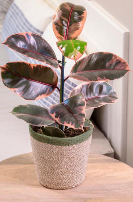 Bring a taste of the tropics into your home with Chroma ‘Belize’. This gorgeous Rubber Plant is similar in variegation to ‘Tineke’–but make it pink, as if sunkissed by the Caribbean sun! Its ovate-shaped leaves are thick & glossy, and variegated in shades of sunset pink, cream, and dark green. To keep your ‘Belize’ gleaming & vibrant, position in bright, indirect light and keep leaves polished with leaf shine.