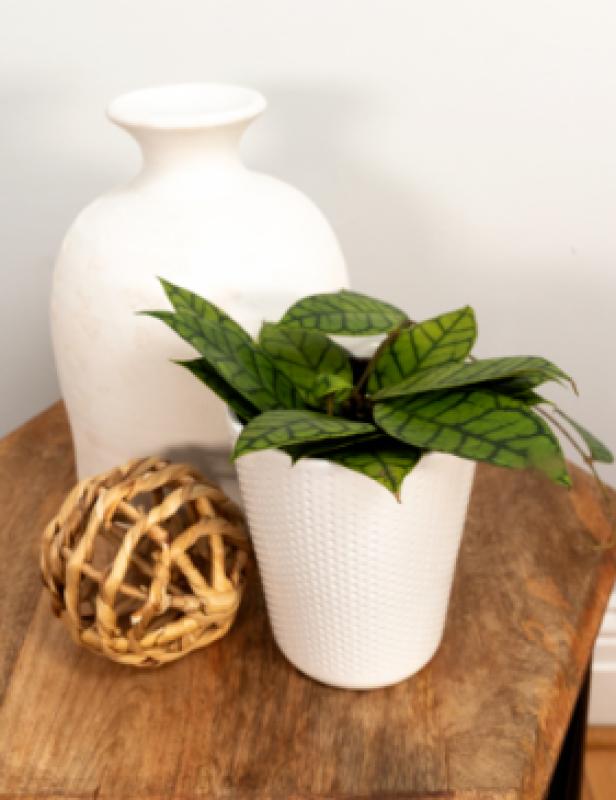 Here’s an unusual variety of Hoya, grown for its uniquely patterned foliage. Hoya callistophylla ‘Shadow Falls’ sends out vines of light green, lanceolate leaves, patterned or “shadowed” with dark green veining in a pinnate pattern.  On the rare occasion it blooms, it sends out little clusters of pale, citrus-scented blooms with edges that blush over time. When your ‘Shadow Falls’ is done blooming, be careful not to cut away the spent flower spurs, as this variety of hoya reblooms on old spurs.