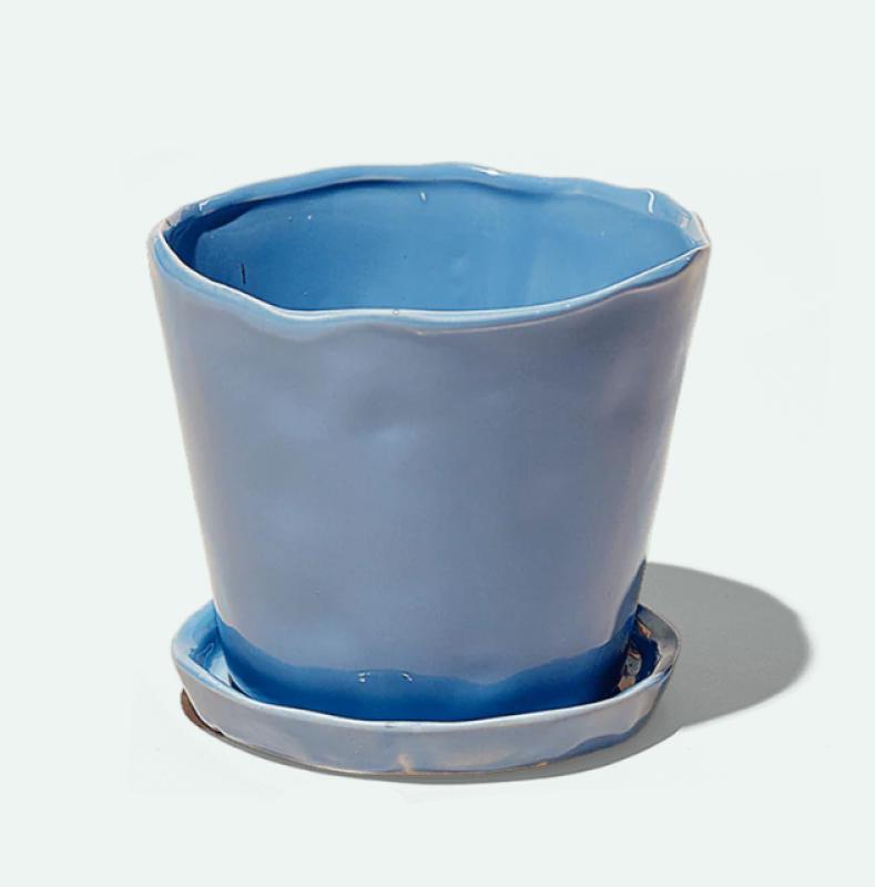Elevate your plant presentation with the Tika 5" Ceramic Pot & Saucer, finished in a soft periwinkle glaze and crafted for both beauty and functionality. The scalloped rim gives this pot an organic, artisan feel, while the integrated saucer and drainage hole protect surfaces and promote plant health.