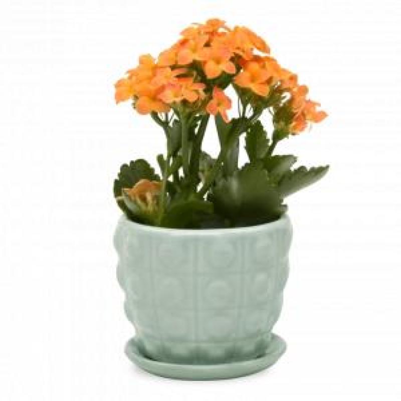 Convex Ceramic Planter With Drainage Hole and Saucer Mint 3"