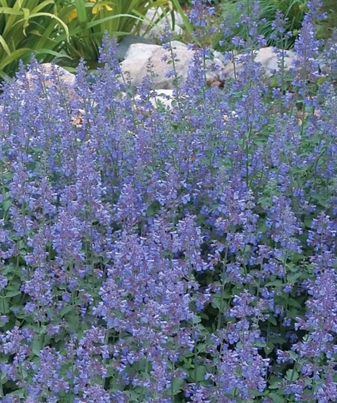 Named for a garden in England, not for its size, as it grows to 30". Lovely blue-violet flowers accent the aromatic, grey-green foliage. Its long season of bloom and carefree habit make Nepeta Walker's Low shine when placed with Coreopsis and Hemerocallis. Engulfed in flowers! Seeds are sterile.