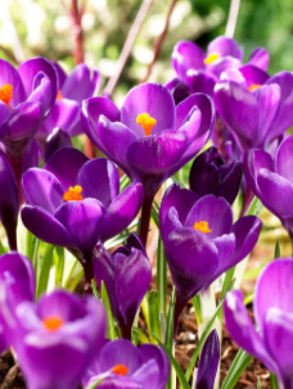 Deep purple-blue crocus. Pretty petalled flowers on purple tipped flowering stems contrast perfectly with the bright yellow anthers of this jumbo-sized crocus. Create a carpet of rich royal purple or use this early flowering plant as an edging.