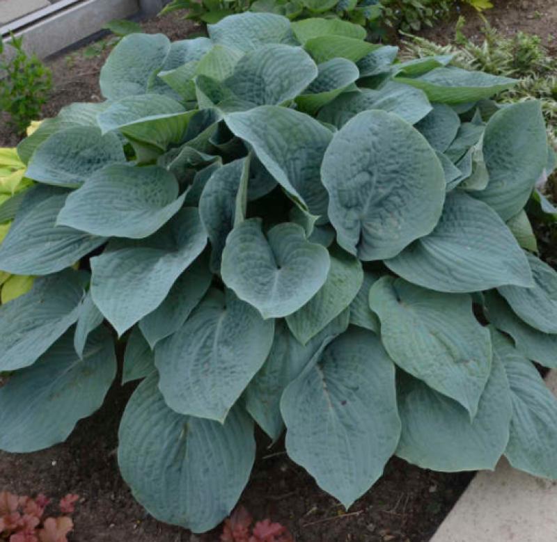 This excellent blue hosta is a strong grower and reliable performer in the landscape. It forms a medium sized mound of large, blue, rounded leaves that are rugose and puckered in unusual patterns. Late in the season, the foliage transitions to green. Attractive light mauve speckles appear on the petioles.