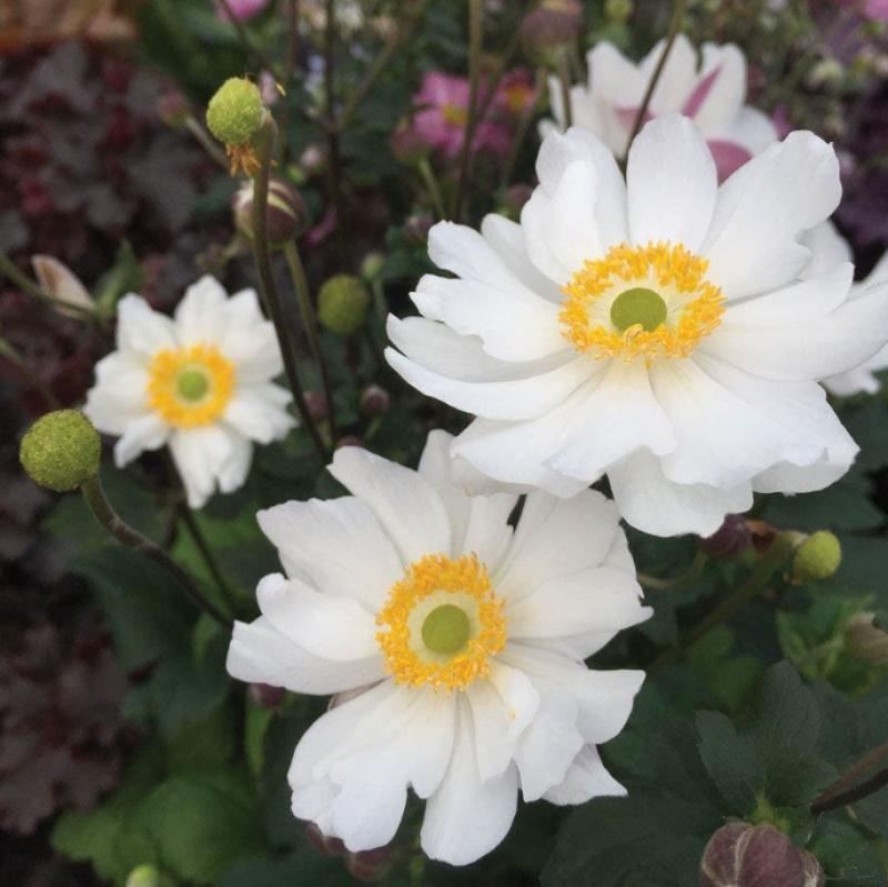 Anemone Fantasy™ Snow Angel is a perennial offering late-season interest, just as other plants are beginning to fade. With a long blooming season, the plant flowers heavily in a flurry of bright white poppylike flowers with a yellow "button" of stamens in late summer into early autumn, attracting butterflies.