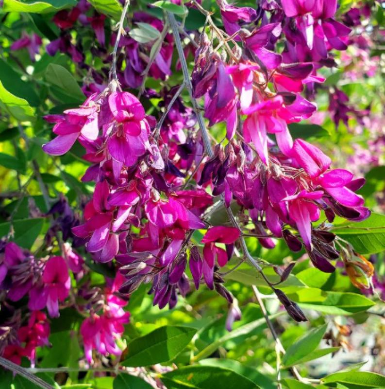 This beautiful fountain-like plant features a waterfall of spectacular pinkish-purple pea-like blooms held in strings approaching 6 long starting in early August and continuing into September. While the flowers are the most spectacular aspect of this plant, you cant go wrong with the form and foliage that is a little off the beaten path for most woodies. Blue-green, pea-like, trifoliate foliage lines up along arching stems adding to its flowing, spreading look in the landscape. The heavy, spectacular bloom weighs the stems down even more creating a groundcover effect that really lights up the summer landscape. Gibraltar is very effective when planted on slopes or grown in masse for a stunning show of color. Its easy to grow, tolerates sandy soils, full sun and even brutal spring pruning, springing back even stronger and bolder once cut back hard.