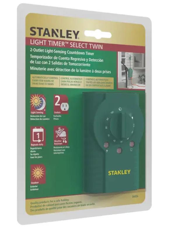 Designed for convenient outdoor lighting control, the Stanley LightTimer Select Twin features a smart photocell system that automatically manages your exterior lighting based on natural light conditions. Its durable design provides reliable performance for yard lighting, patio illumination, and holiday and seasonal decorations with minimal user intervention.