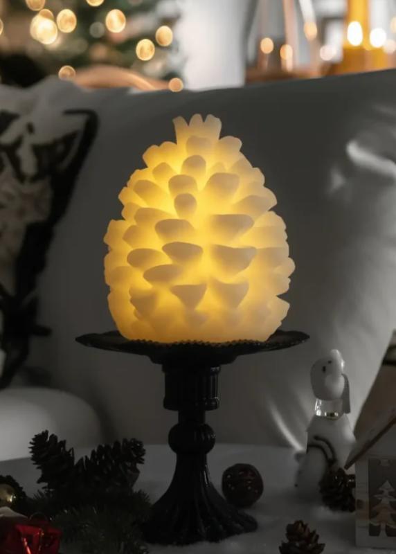 Bring cozy, festive ambiance to your home with this elegant Pine Cone LED Candle in white. Featuring a realistic pine cone design atop a soft, flickering LED candle, it combines rustic charm with safe, battery-operated convenience. Perfect for holiday décor, mantel displays, tablescapes, or seasonal accents.