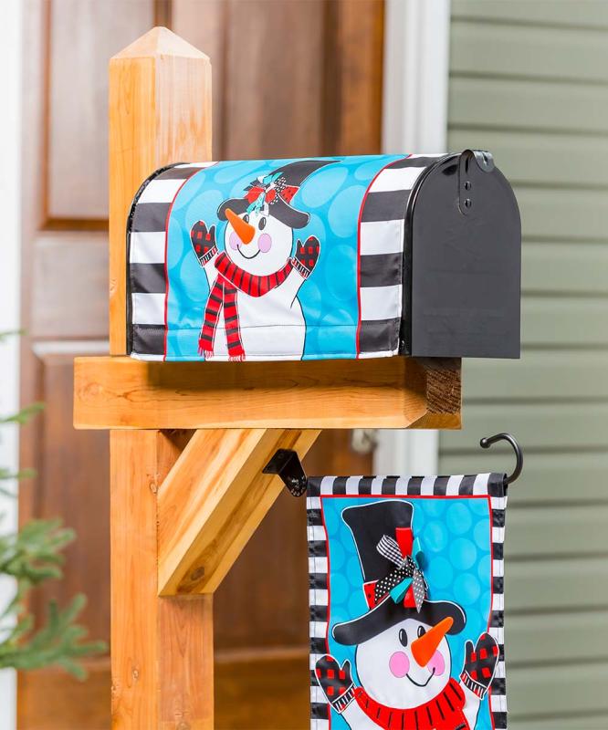 Give your home some added holiday curb appeal with this Patterned Snowman Mailbox Cover. Spread some seasonal cheer to guests and neighbors with this Frosty The Snowman design enhanced by a black and white striped border and a blue polka dot background. Frosty wears a striped scarf, plaid gloves, and a top hat adorned with colorful bow embellishments for the perfect blend of unique patterns. With detailed hand-stitching and a 3D look, Evergreen's mailbox covers are made of 310 denier nylon. The durable materials are fade and weather-resistant, ensuring it last season after season. Magnetic anchors on each side help hold it on the mailbox. Includes latch and flag openings for added convenience and fits most standard-sized mailboxes.