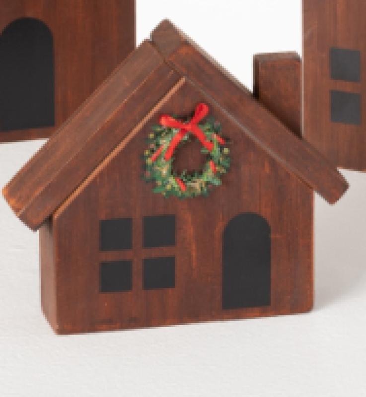 With a rich mahogany stain, this decorative set of wooden tabletop houses makes for a festive village-style display. Dress the mantle with these easygoing favorites that are big on style yet sized conservatively.