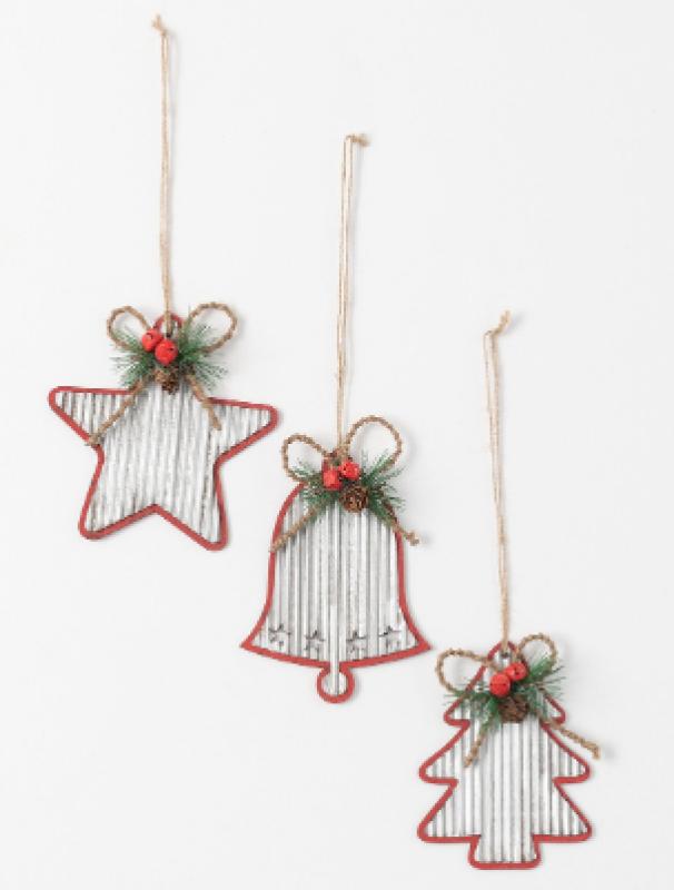 White & Red Bell Ornament - Set of Three. Create a festive ambience within your home with the rustic charm of this trio of ornaments that enhances your homespun holiday decor. Includes one each white and red bell, star and tree ornament