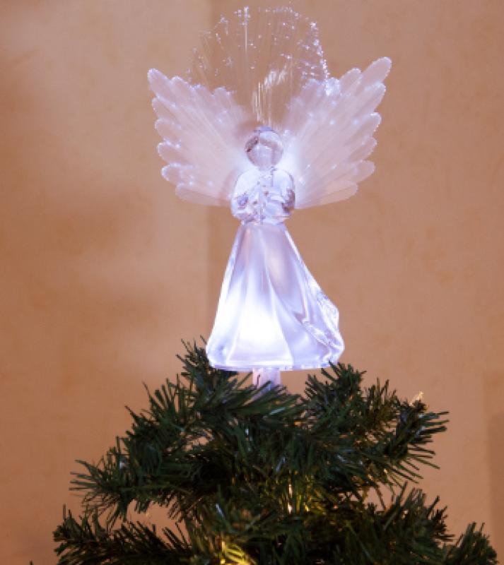 Your holiday display will look heavenly with the Alpine Corporation Angel Tree Topper. This exquisite decoration features a beautiful white angel with fiber optic wings with an internal Cool White LED light to cast a stunning glow in whatever room your Christmas tree is displayed. This glorious tree topper is powered by 3 AA batteries, which are sold separately, and is controlled by an on/off/6-hour timer switch.