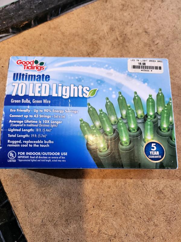 Embrace the festive spirit with the Good Tidings Ultimate 70 LED Lights, a multicolor string light designed to bring a touch of warmth and cheer to your holiday decor. Perfect for both indoor and outdoor settings, these lights feature a vivid green hue that complements the festive theme of Christmas celebrations. With a reliable electric power source, the string light includes a light sensor for easy operation. Its 70 LED lights are tested to ensure long-lasting illumination, creating a charming and welcoming atmosphere for any holiday scene. Whether draped across your Christmas tree or wrapped around your mantel, these lights promise to enhance your holiday experience with their vibrant glow.