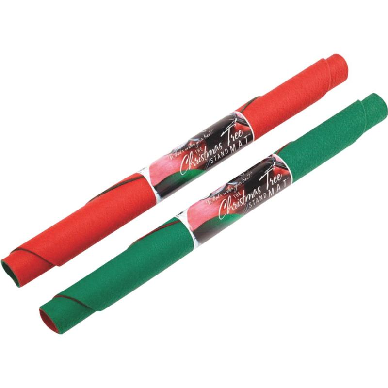 Designed to protect hardwood floors and carpets from spilled live tree water resulting in stains. The attractive, reversible, red and green mat can be used with real or artificial trees and may be used with or without a traditional tree skirt, making it highly functional and economical. Composed of 2 nonwoven fiber materials separated by a patented barrier media, this durable 30 round Christmas Tree Stand Mat is lightweight and can be cleaned easily.