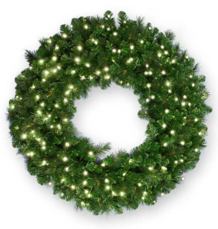 Flocked Wreath With Berries & Ornaments & Red Bow