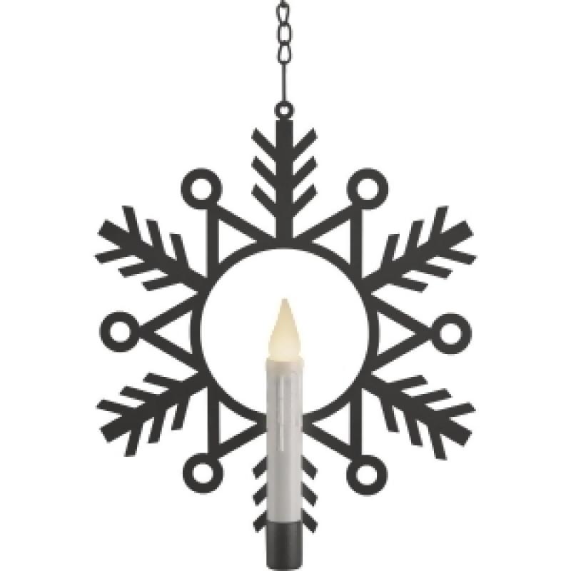 Durable metal window wreath with LED (light emitting diode) candle. Features a white Hot Spot LED battery operated candle light and aged bronze metal wreath with a white stick candle. Twist candle base to turn on. Includes an 8-hour repeating timer. LED light source never needs to be replaced. Requires (2) AA alkaline batteries not included.