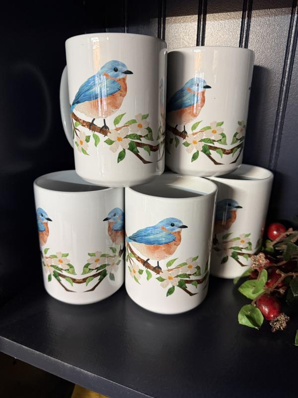 Ceramic Mug Eastern Bluebird White 15 Oz