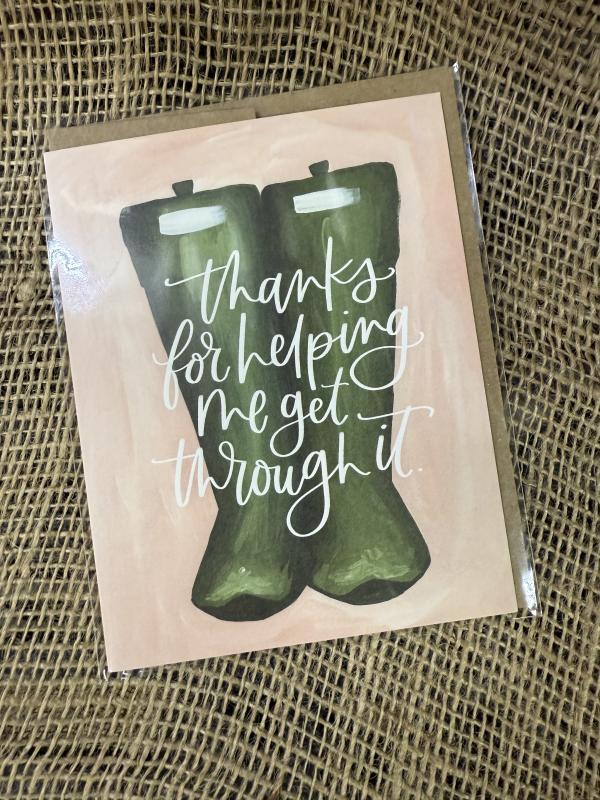 Greeting Card Helping Me Rain Boots Thank You 5 x 7