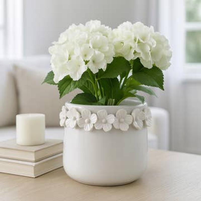 Ceramic Round Floral Applique White 6 In