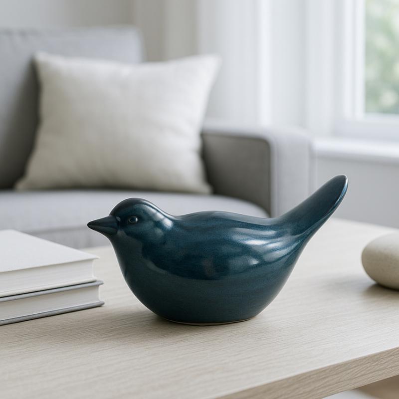 Bird Figurine Ceramic Reactive Finish Blue 4 x 8 In