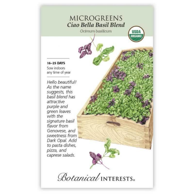 Ciao Basil Bella Blend Microgreens (Ocimum basilicum) is a flavorful mix of basil varieties harvested at the young microgreen stage for concentrated aroma and taste. The tender, vibrant leaves deliver classic sweet basil notes with subtle variations in color and intensity, perfect for garnishes, salads, and gourmet dishes. Fast-growing and ideal for indoor or countertop production, this blend thrives with bright light and consistent moisture.
