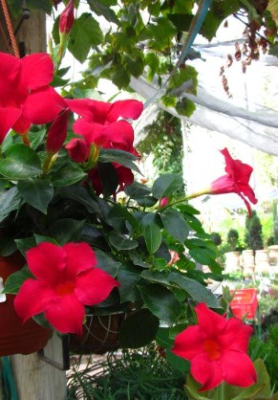 Are you looking for a flowering red vine that gives you a mini-vacation every time you gaze upon it? The Red Mandevilla is a beautiful tropical plant that is absolutely mesmerizing. It is a woody vine that seems to laugh at the heat, putting out beautiful, red trumpet-shaped blooms all along its woody, twining stem.