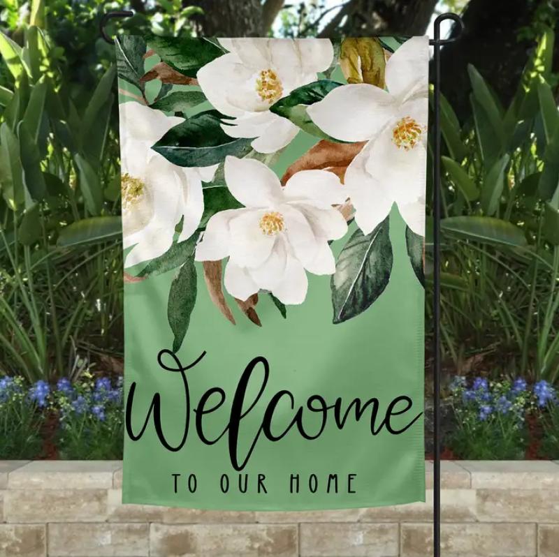 Welcome to Our Home Magnolia Garden Flag Green
