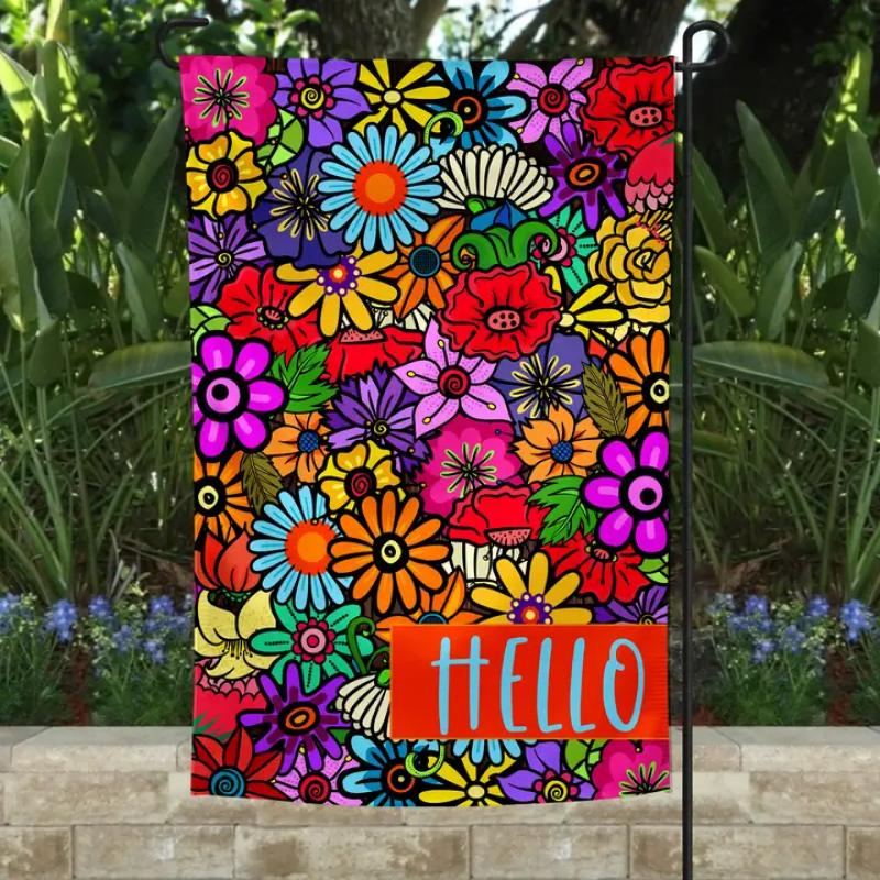 Hello Orange Flowers Garden Flag